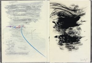 Édition originale ornée de 6 lithographies originales hors texte de René Laubiès dont trois tirées dans un ton prune, l'une d'elles à double page.#Tirage à 113 exemplaires. — Un des 14 exemplaires sur papier vergé extra-fin hors commerce, signé par Laubiès et, aux crayons de couleur, par Fernando Arrabal, enrichi d'une « encre » originale et d’une dédicace autographe de René Laubiès à Gérard et à Martine Vidalenche (Paris, 2003). #