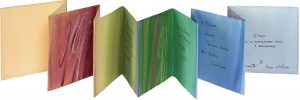 LASCAULT (Gilbert) [et] Anne WALKER. Les Climats cléments. Paris, 20 septembre 2009. Plaquette in-24 carré (107 x 108 mm) de [12] ff. montés en accordéon, le premier et les versos blancs, couverture à rabats peinte en vert avec titre écrit au...