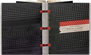 justification ; Autre titre), xij pp., [1] f. (Nouveau titre), 43 planches avec serpentes et légendes imprimées en rouge, [4] ff. (Table), reliure en révorim noir moulé d’après le modèle « objet 2000 », au plat supérieur double bannière horizontale de box gris cannelé avec titre à froid et rouge et perforations, bordure et dos de peau grise imitant le reptile, coutures sur trois rubans de peau rouge estampée, non rogné, couverture, chemise et étui (Jean de Gonet Révorim. Atelier Antonio P[erez] N[oriega]. 1986).