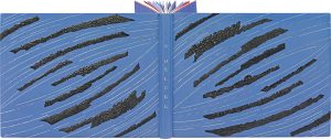 pp. 11-12, [7] ff. (Vierge ; Fin du texte ; Justification ; Vierge ; Achevé d’imprimer ; Vierges, (2), reliure de l’époque box bleu lavande, sur les plats neufs bandes obliques de box noir avec relief imitant l’écorce entrecoupées de filets au palladium ou de couleurs luminescentes, dos lisse avec titre à la chinoise en lettres de couleurs, doublures et gardes de daim bleu bordées d’une fine bande de box rouge, entièrement non rogné, couverture rouge avec plat supérieur portant une étiquette de titre aquarellée par Baltazar, chemise à dos de même box et étui (C[olette] & J[ean]-P[aul] Miguet).