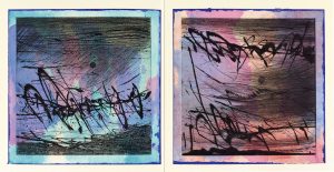 Édition originale ornée de 2 eaux-fortes originales hors texte en couleurs de Julius Baltazar. Elles sont tirées sur papier fin du Japon appliqué et préalablement peint à l’unité par l’artiste. — Tirage à 35 exemplaires sur papier vélin d’Arches signés par l’auteur et par l’artiste.#Sur le faux-titre, dédicaces autographes agrémentées de quelques touches de lavis et de crayons de couleur par Baltazar : « à Gérard et Martine Vidalenche ces rêveries la dérive des heures dans l’amitié de Julius, chaleureusement Lionel Ray » ; « Pour Gérard et Martine dans l’amitié depuis toujours, l’affection de Julius – III MMIX. »#