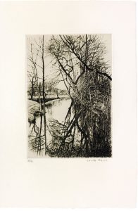 Édition originale accompagnée de 10 gravures originales hors texte de Cécile Reims signées au crayon par l’artiste. Le burin et la pointe sèche lui ont permis de traduire avec sensibilité des images d’arbres et d’étangs. — Tirage à 20 exemplaires sur papier vélin de Rives signés (le texte sur papier extra-fin).#Dédicace autographe au crayon en tête : « À Gérard Vidalenche ces arbres qui dressent leurs branches vers le ciel, qui se reflètent dans l’eau, qui unissent les éléments. Très cordialement Cécile Reims ».#