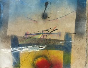 Édition originale produite à 4 exemplaires. Texte écrit à la main par l’auteur (11 pages titre compris) et ornementation peinte à l’aquarelle par Julius Baltazar sur les 64 pages ainsi que sur les couvertures. Huit de ces illustrations sont à double page. — Exemplaire justifié 2 / 4 signé par l’auteur et par l’artiste.#La reliure a figuré à l’exposition Alain Lobstein, catalogue. Paris, Claude Blaizot, juin 1994, n° 59, où elle est ainsi décrite : « Reliure en croûte orangée ».