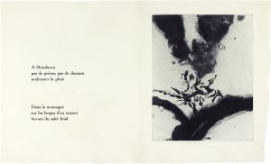 Édition originale de ces courtes phrases poétiques écrites à la manière des haïkaïs japonais.#Elle est ornée d’une aquatinte originale hors texte de Zao Wou-Ki. — Tirage à 88 exemplaires sur papier vélin signés par Kenneth White et par Zao Wou-Ki.#