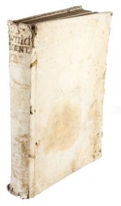 Ampio lavoro di tarlo marginale alle prime 15 carte, alcuni forellini di tarlo sparsi e gore d'acqua lungo il volume, più evidenti in principio.