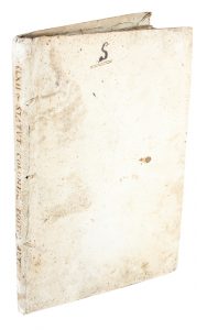 Cartonato coevo con titoli manoscritti al dorso, allentato internamente e con minime macchie ai piatti. Fitte annotazioni di mani ottocentesche ai fogli di guardia anteriori e al verso di carta a1, molte sottolineature a matita rossa.