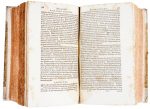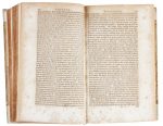 Esemplare scompleto delle carte A2-E8 (pp. 3-80) nel secondo volume, di carta A2 al terzo (pp. 3-4), delle carte aa3-dd4 nel quarto (pp. 364-416), aa2 presente ma con margine bianco ricostruito. Evidenti fioriture, alcuni strappi riparati a poche carte, forellini di tarlo prevalentemente nell'ultimo tomo.