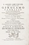 Acquapendente Girolamo Fabrizi (da), L'Opere cirugiche. In Bologna : Nella stamperia del Longhi, 1709.