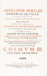 Apollonius Pergaeus, Conicorum lib. 5. 6. 7. […] Additus in calce Archimedis Assumptorum liber. Florentiae : ex typographia Iosephi Cocchini ad insigne stellae, 1661.