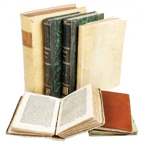 Legatura coeva in piena pergamena rigida con tassello con titoli al dorso e qualche forellino di tarlo.