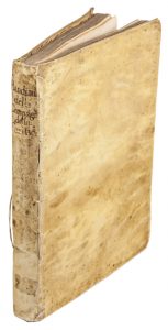 Legatura coeva in pergamena molle con titoli manoscritti al dorso ; tracce di sporco ai piatti.