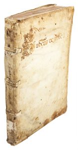 Legatura coeva in pergamena semifloscia con titoli manoscritti al dorso e al piatto anteriore. piccole mancanze al dorso e alle cerniere, antichi reintegri ai risvolti e lacerti di legacci.
