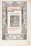 Frontespizio stampato in inchiostro rosso e nero ornato di una superba cornice istoriata, con al centro grande marca tipografica raffigurante tre uomini al torchio incise in legno.