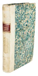 Legatura coeva in mezza pergamena con punte e piatti in carta marmorizzata, con minime mende ; titoli dorati su tassello al dorso.