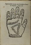 •Cocles Bartholomaeus, Trattato di Chiromantia. Amsterdam : per Gio : Giansonio, 1641. Pagine 48, con 3 mani chiromantiche incise in legno nel testo. Esemplare in barbe, con uno strappetto lungo il testo a carta B1 della prima opera e forellini di tarlo sparsi che occasionalmente ledono il testo nella seconda. Cartonato muto coevo un po' liso.