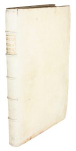 Lieve gora d'acqua nel margine inferiore delle carte, altrimenti ottimo esemplare ad ampi margini. Legatura coeva in pergamena rigida con titoli impressi in oro al dorso, in buono stato nonostante le sguardie distaccate e un taglio alla cerniera del piatto anteriore.