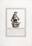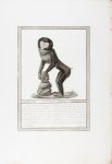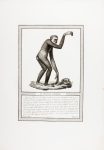 A fogli sciolti e a pieni margini. Frontespizio entro bella cornice architettonica incisa in inchiostro seppia, 28 carte di testo incise e nel complesso 88 belle tavole con le varie specie di scimmie.