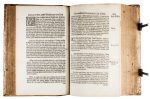 Note di possesso ai fogli di guardia e ai frontespizi, glosse manoscritte di due diverse mani cinquecentesca e seicentesca, fitte sottolineature.(8)