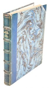 Legatura coeva in mezza pelle blu con punte e piatti con carta marmorizzata.