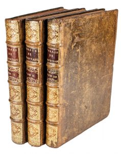 Montaigne Michel Eyquem (de), Les Essais [...]. Donnez sur les plus anciennes et les plus correctes editions [...] Avec des Notes [...] par Pierre Coste [...]. Tome premier (-Troisieme). A Paris : Par la Societé, 1725.
