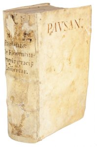 Quarta edizione della traduzione di Amaseo "which was the first complete translation of Pausanias into Latin, first published in 1547" (Blackmer 1271) ; Hoffmann III, 206 ; Schweiger I, 225.