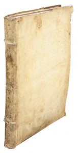 Legatura muta coeva in pergamena semifloscia con lacerti di legacci e restauri al contropiatto posteriore, sguardie rinnovate.