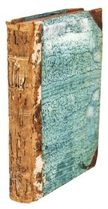 Legatura settecentesca in mezza pelle con punte, lisa e con tassello del titolo quasi del tutto perduto.