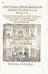 Tricasso Patrizio, Epitoma chyromantico [...]. Nel quale si contiene tutte l'opere per esso Tricasso in questa scientia composte, con assai figure, & dichiarationi agiunte… (Al colophon : ) In Venetia : per Agostino de Bindoni, [1538].