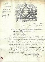 Général Charles Barthélémy de Saint-Fief *Barras Paul François [Var 1755 - 1829] / Las (paraphe), Bruxelles, sd, à Victor Grand *Bacler D’albe Louis Albert [Pas de Calais 1761 - 1824] / Ls, Paris, avril 1815 *Berthier Louis César [Versailles 1765 - 1819] / Las, Modène, an 9 / La à la troisième personne, Turin, 1809 *Bizanet Guilin Laurent [Grenoble 1755 - 1836] / Certificat As, cachet de cire rouge, Toulon, an 3 *Chabot Louis François [Niort 1757 - 1837] / Ls, à son en-tête, Armée de l’Ouest, Nantes, an 9 *Chateauneuf-Randon Alexandre Paul [Tarbes 1757 - 1827] / Ls, Metz, an 7
