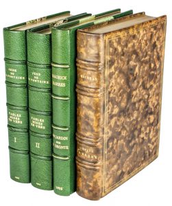 •La Fontaine Jean (de), Fables mises en vers. édition illustrée par Maurice de Becque. Paris : Crès, 1924. 2 volumi. Esemplare n. 1080 su papier de Rives. Legatura in mezzo marocchino verde con brossure conservate.