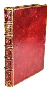 Legatura coeva in pieno marocchino rosso a grana media con piatti inquadrati da triplice filetto dorato e titoli impressi in oro su tassello al dorso ; minimi difetti.