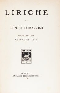 Corazzini Sergio, Liriche. Napoli : Ricciardi, 1909.