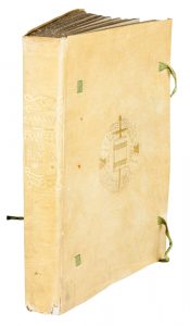 Legatura editoriale in pergamena con impressioni in oro al piatto anteriore e al dorso, nastri in tela verde ; lievemente lisa.