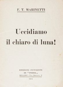 Marinetti Filippo Tommaso, Uccidiamo il chiaro di luna! Milano : Edizioni Futuriste di 'Poesia', 1911.