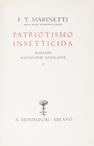 Marinetti Filippo Tommaso, Patriotismo insetticida. Romanzo d'avventure legislative. Milano : Mondadori, 1939.