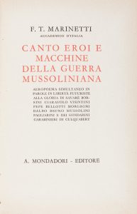 Marinetti Filippo Tommaso, Canto eroi e macchine della guerra mussoliniana. Milano : Mondadori, 1942.