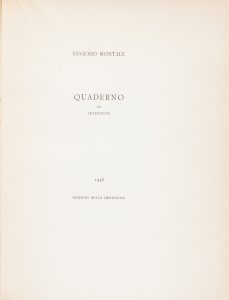 Montale Eugenio, Quaderno di traduzioni. Milano : Edizioni della Meridiana, 1948.