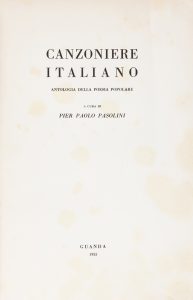 Pasolini Pier Paolo, Canzoniere italiano. Antologia della poesia popolare. Parma : Guanda, 1955.