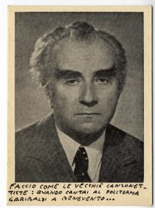 Firmata e datata di mano di Pitigrilli.Sul recto, sotto la propria fotografia, Segre scrive "Faccio come le vecchie canzonettiste :