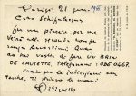 Pitigrilli [pseud. di Dino Segre], Cartolina con autografo di Pitigrilli. Parigi, 21 gennaio 1966.