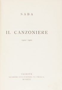 Saba Umberto, Il canzoniere 1900-1921. Trieste : La Libreria antica e moderna, 1921.