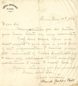 Bell Alexander Graham, Lettera manoscritta con firma autografa. Datata 12 gennaio 1882.