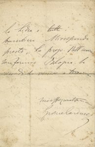 •Id., 1 biglietto con annotazione e firma autografa. Non datato (con busta scritta da altra mano).