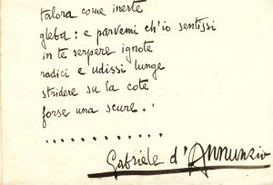D'Annunzio Gabriele, 'Frammento'. Testo poetico firmato, autografo (?). Non datato.