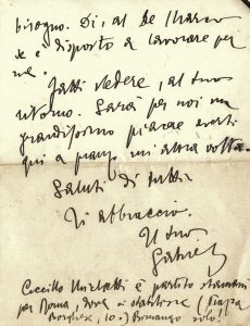 D'Annunzio Gabriele, Lettera autografa firmata inviata a Nicolino. Non datata.