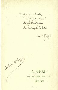 Graf Arturo, 'A un guidatore di automobili'. Brano poetico autografo firmato. Non datato.