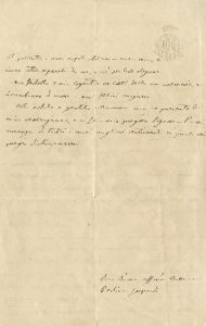 Manoscritto a inchiostro nero su carta intestata di Paolina Leopardi.