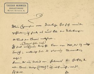 Mommsen Theodor, Biglietto autografo siglato. Non datato.