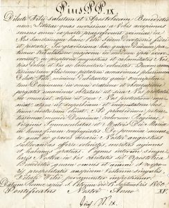 Papa Pio IX, Lettera manoscritta con firma autografa inviata a Ludovico Leoni. Datata 15 settembre 1860.
