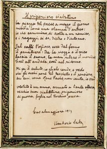 Saba Umberto, 'Il prigioniero ciabattino'. Testo poetico autografo firmato. Datato Casalmaggiore, 1915.